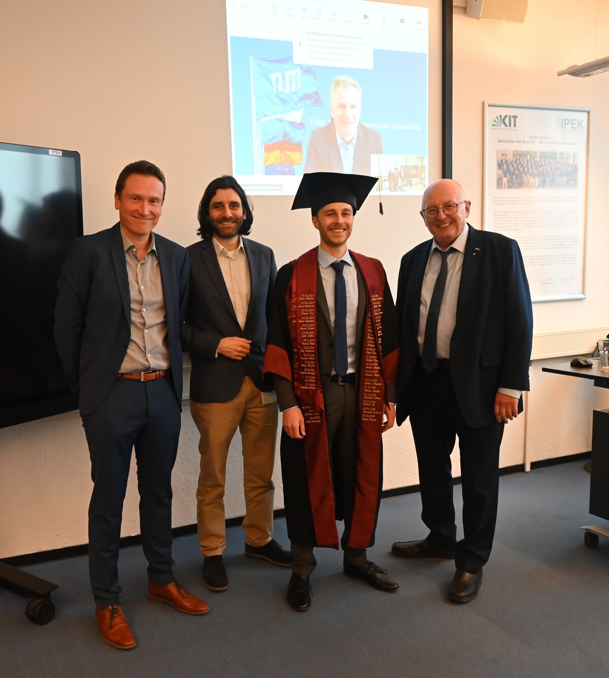 Das IPEK gratuliert Herrn Dr.-Ing. Arne Bischofberger ganz herzlich zu seiner bestandenen Promotionsprüfung am 29. Januar 2026. Unter dem Titel „Ein Beitrag zur gezielten Gestaltung und bedarfsgerechten Regelung des nasslaufenden Kupplungssystems für den Einsatz als mechatronisches Stellglied mit der Funktionserweiterung Schwingungsreduzierung im Schlupfbetrieb“ hat Herr Dr.-Ing. Bischofberger einen wesentlichen Beitrag um die Funktionserweiterung im Produktentwicklungsprozess neuer Systemgenerationen von Antriebssystemen mit nasslaufenden Kupplungssystemen als Maßnahme zur Schwingungsreduzierung verbessert und gezielt integrieren zu können. Seine gewonnenen Ergebnisse und Erkenntnisse ermöglichen bedarfsgerechte Komfortsteigerungen und die Substitution bzw. die Reduzierung anderer Teilsysteme, was zu nachhaltigeren und effizienteren Antriebssystemen führt.