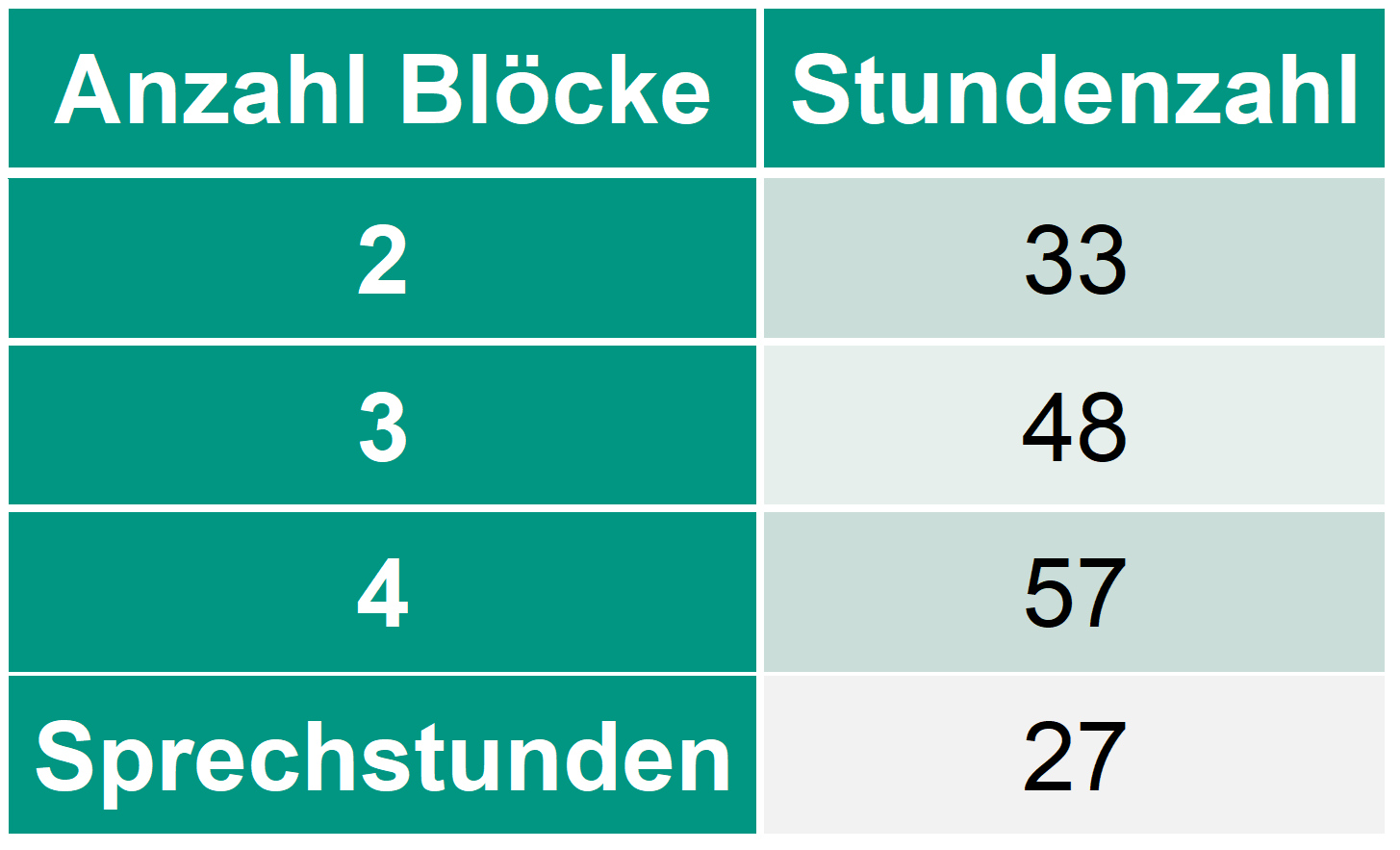 Die Anzahl vergüteter Stunden siehst du unten. Dort enthalten sind die Anwesenheit zu drei Projektsitzungen pro Block, ein einstündiger Einweisungstermin sowie Vorbereitungszeit. Zusätzlich benötigen wir auch Springer für jeden Block. Pro Springerdienst wird die volle Workshopzeit angerechnet. Ebenfalls werden Stellen für die MKL-Sprechstunde nach individueller Absprache besetzt.